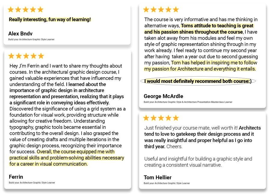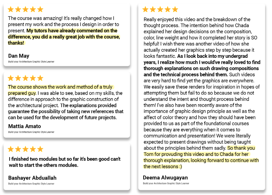 Our course is led by an award-winning Master of Architecture graduate who has mastered graphic communication and is passionate about sharing their knowledge.