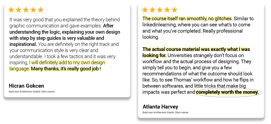 In my experience, while architecture schools and practices expect you to know how to communicate projects effectively, you are rarely taught how. This is why I have developed this course to teach you how.